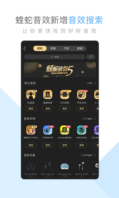 由蝰蛇(VIPER)专业打造的智能均衡环绕音,更有多种预设音效,让同一首歌也有不同的味道;